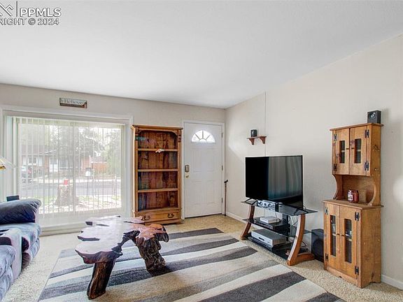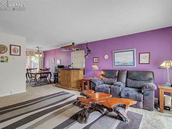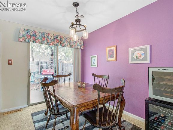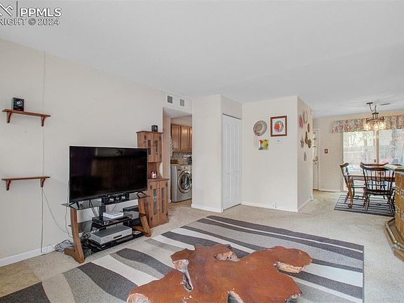 Looking for one level living? This lovely 3 bedroom, 2 bath is the one. Relax in the spacious living room with large picture window to let in the sun. The dining room flows from the living room and features a sliding glass door to allow for indoor or outdoor entertaining. Stainless steel appliances and good counter space in the kitchen. The washer and dryer will stay. The primary bedroom features its own bathroom plus walk in closet. Two more cozy bedrooms with large closets. This corner lot is fully fenced-front and back. Raised garden beds in the backyard for your favorite crops. The oversized 2 car garage has shelves and room for not only cars but great workspace. Located close to schools, shopping, and Ft. Carson.