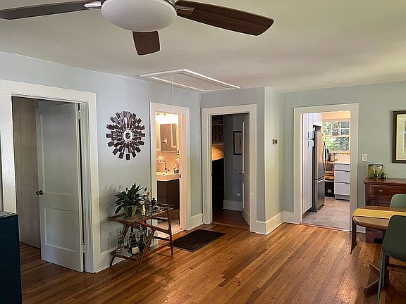 Adorable cottage on a beautifully landscaped and level lot. Located In Town and close to everything! Lots of updates including open living/dining room, newly painted exterior, refinished hardwood floors and double paned and insulated windows. Current owner has continued to renovate and improve with new roof (2019), new furnace (2017), hot water heater (2018) and central A/C (2015). New stacked washer/dryer installed off of kitchen (2015). Most recent renovation is complete kitchen remodel with new floors, cabinets, appliances including conversion to gas range (2021). There is a single car garage for storage, a partially unfinished basement and accessible attic space with additional storage.