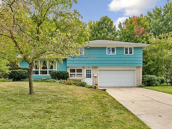 Wow is this a great location! This home is absolutely inviting! First thing you will notice is the newer roof (2022) and as you walk up to your new home, you’ll see the attractive blue siding which is soft, clean and tranquil with a classic cool tone. Once in the home you’ll be pleasantly surprised by the large welcoming foyer. Step up into the large living room with gorgeous wood floors and enormous Anderson picture window drenching the room in natural light. The living room flows right into the informal dining room and then into the private three season porch overlooking the almost half acre yard. The raspberry patch is already fenced off to provide you with yummy fruit next summer. The enclosed three season porch is the perfect spot for your morning coffee or to unwind after the long work day and enjoy a beverage and a good book while enjoying the nature views. As you go upstairs the hallway carpeting is brand new and you will find four bedrooms and a full bath all on one level. Original hardwood floors lie beneath the bedroom carpeting, offering potential for a charming update. From the backyard or the garage there is quick and easy access to a bathroom. Separate laundry room is perfect to close the door when guests arrive. In the basement you will find a hang out space with bar area for an awesome bonus. There is potential for a fifth bedroom in the basement the egress window is already in place!