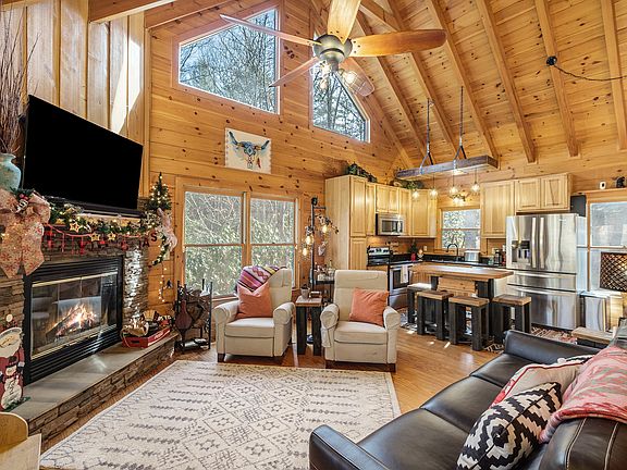 This cabin in the woods is magic! Escape for the weekend to your own private retreat complete w/ bocce court, horseshoe pit, rock firepit, stocked spring fed fish pond, private jogging loop & more. Attention to detail? Yes! You will find a beautifully updated 3BR 3BA cabin w/ gorgeous renovated chef's kitchen, granite countertops throughout, soaring cathedral ceilings, spacious master suite w/ private balcony, finished basement w/ game room, fully appointed wet bar & workshop. Did I mention the wrap around decking, concrete party pad w/ hot tub & enclosed storage shed? This one really has it all! Perfect full time home, Vacation cabin, or Rental