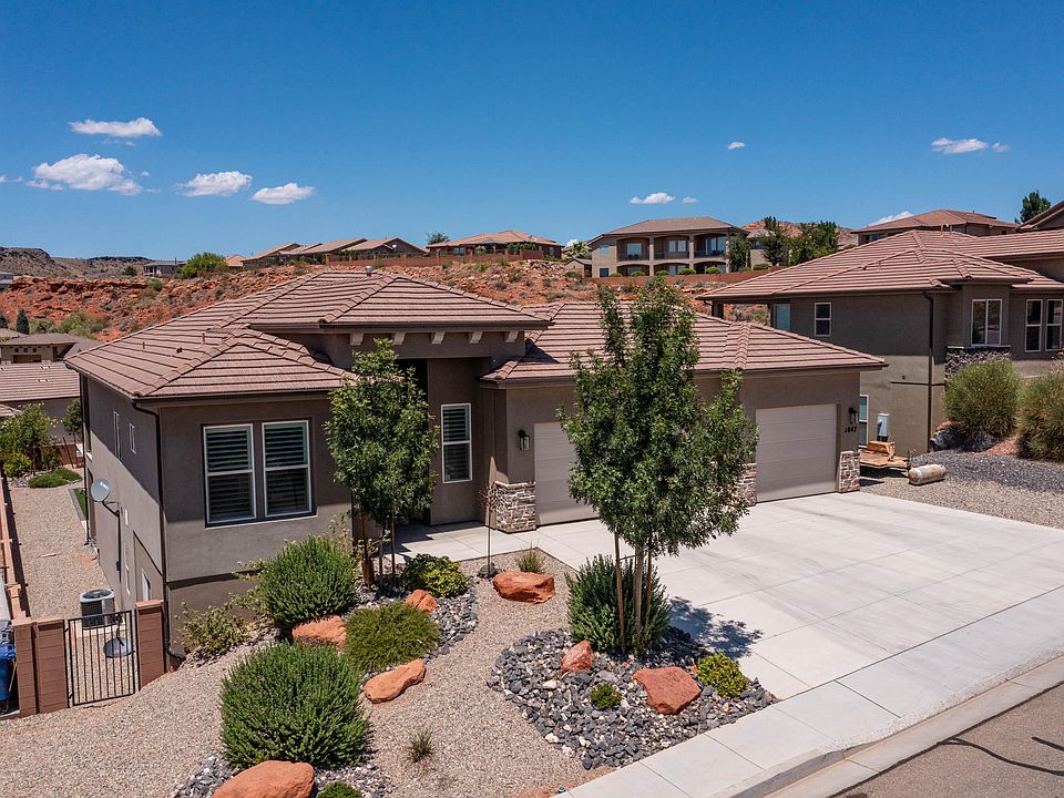 Immaculate 6-bed, 4-bath walk-out basement home that feels brand new! Perfectly located in the heart of town with no HOA, this home blends thoughtful upgrades with functional design. Main level features 3 bedrooms, 2 baths, and an open-concept layout w/ wood plank tile flooring. Kitchen includes a gas range, leathered granite countertops, and SS appliances. Automated blinds and custom closets add convenience throughout. The lower level offers 3 more bedrooms, 2 baths, a large second family room, and plenty of storage - ideal for guests, hobbies, or multi-generational living. Oversized garage with built-in cabinets and epoxy floors. Enjoy red rock views from the backyard covered patio, artificial turf, and an 8x15 lifetime shed. Room for a pool to complete your dream outdoor space.