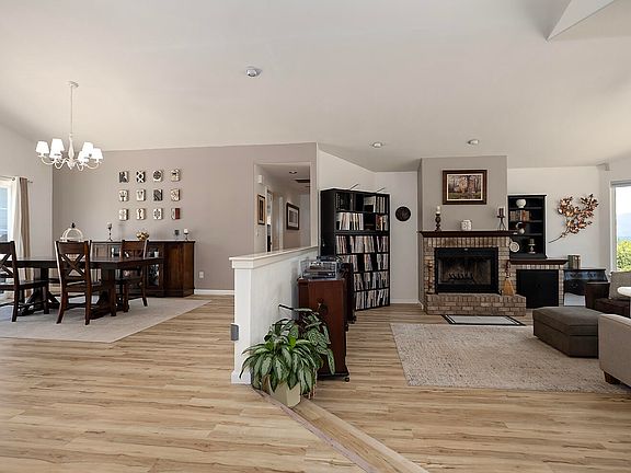 Single-level living with panoramic views. Spacious floor plan, eat-in kitchen has a walk in pantry, granite countertops, standalone gas cooktop with an additional formal dining room. Great room boasts a fireplace that can burn wood or use natural gas. Ample natural light throughout. Primary bedroom has another wood fireplace, en suite bathroom with a soaking tub and separate shower as well as a sliding door to the deck. Two additional bedrooms, guest bath as well as a half bath off of the kitchen. The expansive deck is wired for a hot tub and has a propane fire pit. The deck was replaced 3 years ago. RV parking along side the garage (behind shed) with power and sewer hookups.
