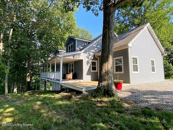 This newly remodeled 4 bedroom, 3 bath home sits on 4 waterfront lots on Nolin Lake. This beautiful home is about 2 miles from Wax Marina by water. There is a 2 car garage to the left of the home. Garage is a 32'x36' with 7x10 ' doors that will easily fit a bass boat and all your lake toys. Listed below are recent upgrades to the home: 2017 -New stainless steel appliances -16'x36' Deck added at garage -50 amp and 30 amp RV hook-ups installed at the garage. 2018 -Vinyl siding -Roof -Hot Water Heater 2019 -All bathrooms remodeled -New trim work -Utility room added to main level -Custom kitchen cabinets with soft close doors -Granite counter tops -HVAC -Light fixtures -Propane fire logs There is a dock to transfer with COE approval and restrictions apply.