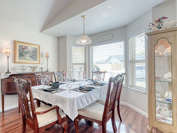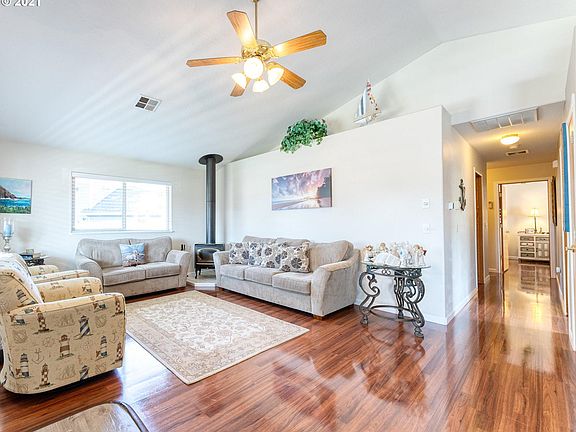 Charming and Immaculate home. 3 bedroom/2 bathroom home with double door entry and beautiful laminate floors throughout. Newer roof and ductless heat pump. Cozy wood stove. Side entry ramp and handicap accessible bathroom. Newer 15x30 deck to enjoy with backyard BBQ'S with friends and family. Coffee, tea or lunch under Gazebo. Putting green/low maintenance yard. Close to Harris Beach State Park, schools, the city park and downtown amenities. Super adorable this won't last long!