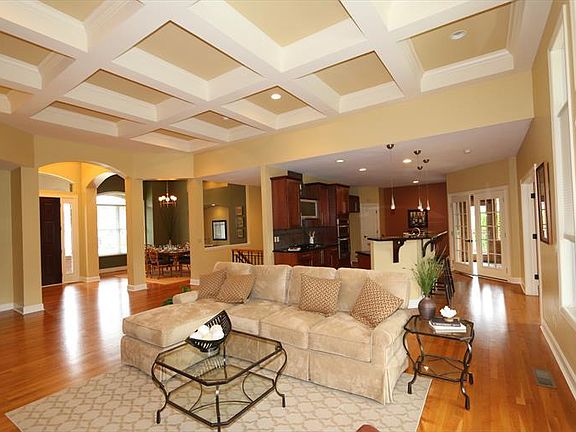 NEW PRICE! Fabulous ranch! Open plan* Soaring ceilings* Luxury Master Bedroom and bath* Beamed great room* 3 fireplaces* Finished Lower Level Family Room, rec, wet bar, 3 Bedrooms, Lower Level egress windows & surround sound* $8K composite deck, pond!