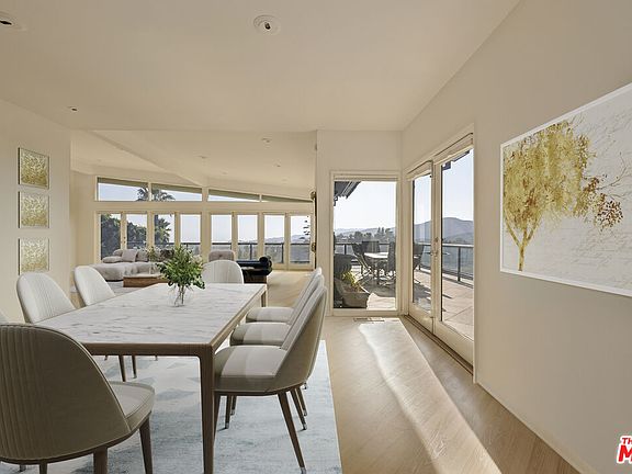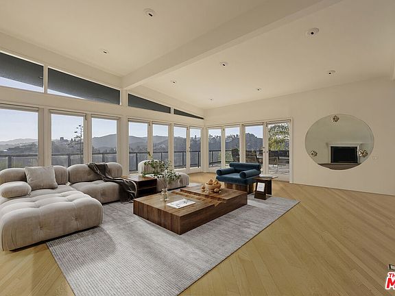 Experience the luxury of unobstructed panoramic views that span the city, canyons and ocean in this private, gated contemporary home with all the natural light, on one of Bel Air's most highly sought-after streets. A formal foyer unfolds into the sun drenched living room with floor to ceiling glass windows that flow seamlessly past a wraparound terrace to the horizon via the outstretched sun deck below, complete with lawn, landscaping and the prerequisite swimmers pool. A deceptively generous dining area connects the main lounge to a clean and crisp modern kitchen with island, breakfast area and professional grade appliances with deck access and those endless views. The expansive family room, with its own neatly tucked away wet bar, features a show stopping fireplace and the ultimate in indoor/outdoor living with access to that entertainers dream of a main deck just made for summer pool parties, morning coffee or sunset cocktails. Three of the four bedrooms share those breathtaking views, with the spacious primary suite encompassing its own fireplace, a beautifully lit custom walk in closet and a palatial marble bathroom. Note: Some rooms have been virtually staged.