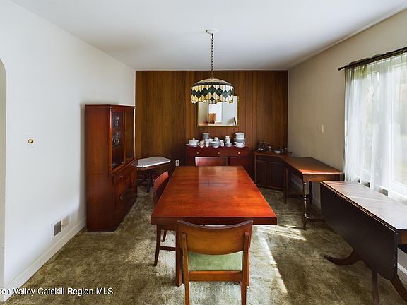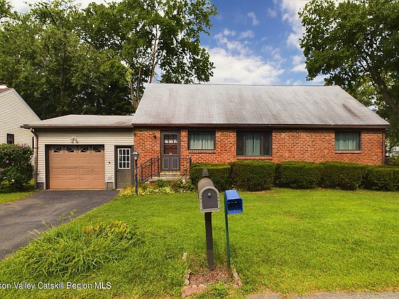 Charming well-maintained brick cape! Step inside this welcoming 4 bedroom, 1.5 bath home. The large living room flows nicely into the kitchen and dining area. There are two bedrooms and one full bath on the first floor with ample closet space. The large sunroom off the kitchen leads out to the backyard and attached garage. Elevate to the second level where you will find 2 more bedrooms and a bath, this area could easily be turned into a home office or private suite. The full basement is partially finished offering more room to hang out or for additional storage space. The property is nicely landscaped with a large one-car garage, and a large shed for storage. Conveniently located minutes to Uptown Kingston Stockade District, Downtown Waterfront, shopping, restaurants and so much more. Come take a look!