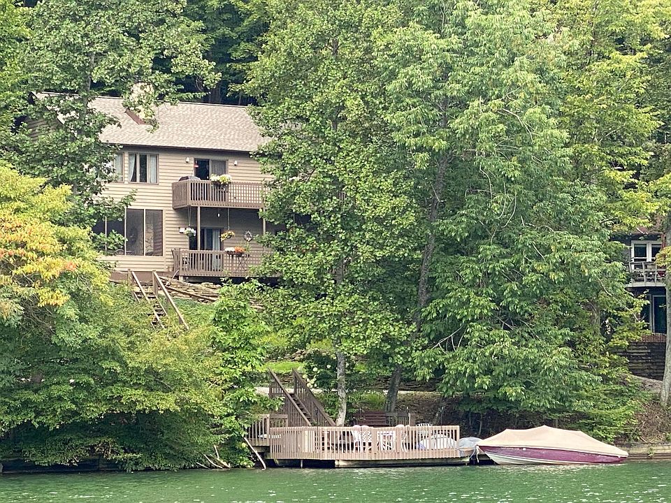 Let your lakehouse dream come true in Hide-A-Way Hills, private & gated resort getaway community gateway to the famous Hocking Hills..for over sixty years and counting! Located well inside the second large cove on Lake of the Four Seasons, this newer home includes a two-plus garage, additional level parking, large dock with space for multiple watercraft and more. You'll appreciate a grand makeover kitchen with newer upscale appliances plus family-sized central cooking island, along with rec/family room plus inviting bar area. And on your way inside, you'll take special note of a view-tiful corner screened porch, along with spacious walkout decks on the main and second levels. Recent updates and upgrades cover essentials and amenities such as HVAC,electric,re-staining,roofs, appliances.