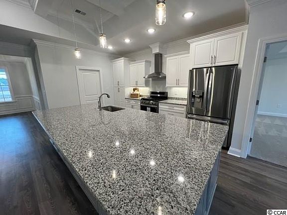 All brick 4 bedroom/3 bath home located on a large home site in the desirable Aynor School District. This top-selling home plan features a spacious great room, coffered ceilings, fireplace, granite island kitchen, large bedrooms, multiple storage closets, LVP flooring, screened in back porch, and a sprawling rear lawn. In addition to the granite counter tops, this upgraded kitchen features all stainless appliances, upgraded cabinetry with soft close dove-tailed drawers and doors. Enjoy your meals at the spacious island, or the formal dining room which features two-piece chair rail and wainscoting, and a crowned tray ceiling. The large master bedroom and bath features a garden soaking tub, over-sized shower, high-quality valves and faucets, granite vanity tops, double sinks, and two enormous master walk-in closets. Exterior features include a carriage style automatic garage door with glass window for natural light, quiet belt drive garage door opener, and maintenance free vinyl shake gables and dormers, brick soldier course and quoined corners, over-sized concrete double drive, entry sidewalk, and more! Call today to view this lovely home!