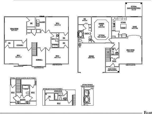 Eliot floor plan has plenty of space for the whole family with 4 bedrooms, 2.5 bathrooms and a bonus room. ALL SECONDARY BEDROOMS ARE HUGE!