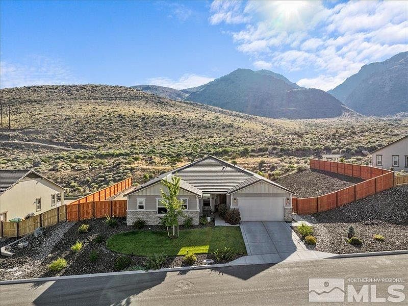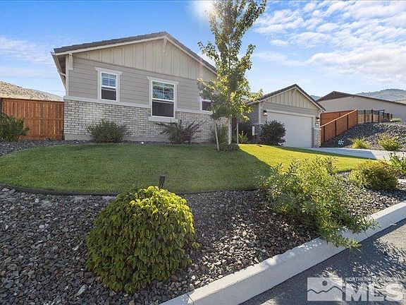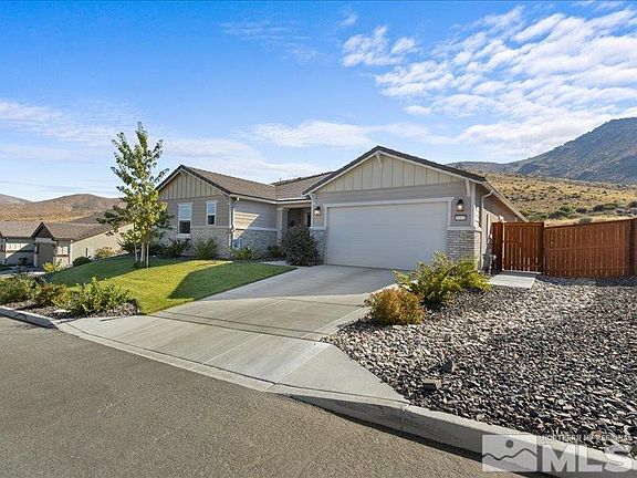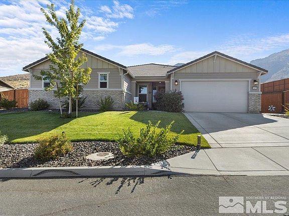 Welcome to Palisades in Damonte Ranch! This single-story home features a spacious open concept floorplan with 4 bedrooms, 3 bathrooms, a 3-car garage on a large 1/3 acre lot with $360,000 in lot premium, builder and post-construction upgrades: this home is a masterpiece!, The extended kitchen features a 12' oversized island and stainless steel appliances. The flex space was transformed into an eye catching cocktail/wine bar with a dual zone fridge perfectly designed for the host in the family to serve creative and refreshing drinks. The spacious kitchen comes with abundant cabinets, counter space and a walk-in pantry all of which is paired nicely with the living room and dining areas just foot steps from the gorgeous back yard and patio entertaining areas. This modern home has upgrades galore: granite countertops, extended kitchen, porcelain flooring, backyard landscaping with full sprinklers, bocce court, extended patio to accommodate large outdoor parties and new gutters recently installed. Enjoy your morning coffee or evening BBQ's from the covered patio, relax and enjoy the beautiful mountain views and peaceful nature from your backyard.