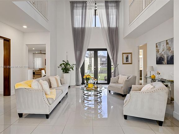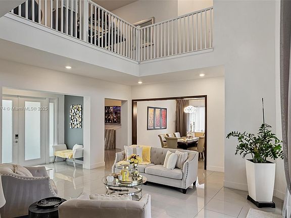 Spectacular single-family home, Rubi model, in the prestigious Cascata at MiraLago community. This 5-bedroom, 5.5-bath residence features a full bedroom with an ensuite bathroom on the first floor, ideal for guests or in-laws. Multiple living areas include a spacious formal living room, comfortable family room, and additional social space for entertaining. Each bedroom offers a private bathroom and custom closets. The expansive backyard showcases stunning lake views with plenty of room to design your dream outdoor oasis.Highlights include a 3-car garage plus exterior parking for 4 more vehicles. Experience the lifestyle and amenities Cascata at MiraLago is known for, in one of its most desirable floor plans