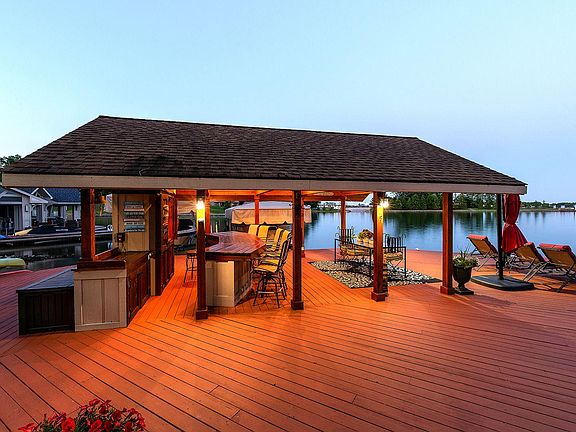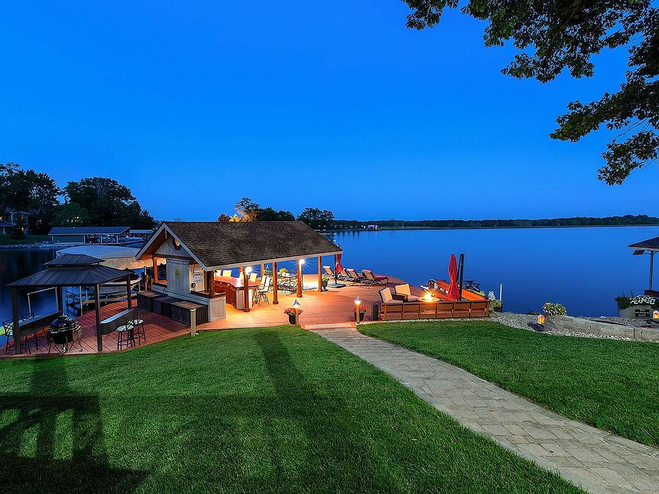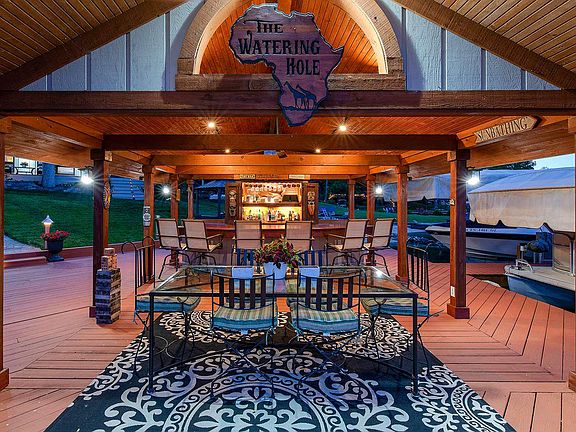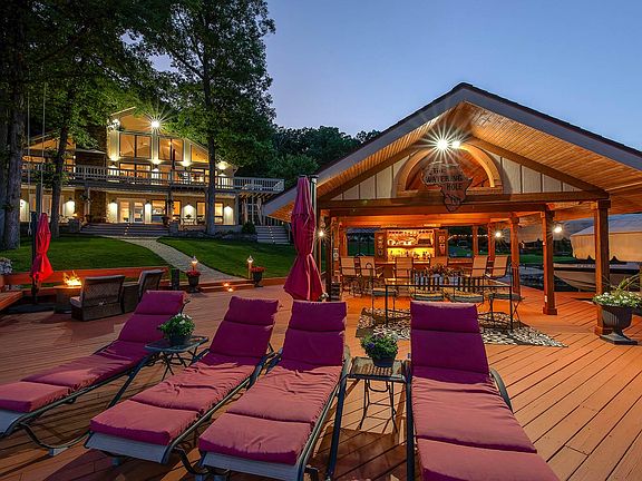 Welcome to the Watering Hole! This 5BR estate is the perfect oasis to enjoy Indianas largest private lake. Incredible waterfront setup with swimming beach, dock, tiki bar, fire pit, & two boat lifts. The house comfortably sleeps 12 with 4 full BA & 2nd kitchen/ living. Two-story great room anchors the open floorplan with wood floors and lake views! 900SF master suite with sitting area, two walk-in closets, dressing room, & balcony. 3car garage, great location on the lake this house has it all!