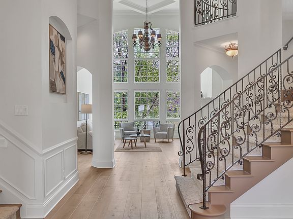 Sophistication and elegance abound in this former Home-A-Rama Best of Show award winner that has been updated in just the right ways while leaving the original charm and appeal that made the home a showstopper. The home's original Italianate features remain while it sports modern flooring on the first- and second-floor living areas as well as fresh, neutral paint throughout. Sonos smart technology has enhanced the house that was already designed for entertaining by adding a customizable sound system throughout including to the bar, billiards area, home theater and exercise room in the basement. And if you don't need an exercise room, the sellers added closet space to this room making it a bonus bedroom as well. Automatic Hunter Douglas blinds adorn each window on the first floor and can be controlled by an app or directly by the push of a button on each blind. Nest thermostats add to the ease of the home's use. And if you like to cook, this gourmet kitchen will not disappoint. The 48" Wolf Range with griddle insert and companion oven and additional Wolf built in oven and warming drawer are top of the line, and the dishwasher and refrigerator are disguised to blend with the custom cabinetry. Granite countertops and a travertine backsplash add to the high-end finishes found in this beautiful space which is open to the hearth room that is flooded with natural light and overlooks the fountain behind the home. A covered patio with remote-controlled screens and heating lamps are off the hearth room's breakfast room, and both also have a spectacular view of the pond and fountain behind the home. The soaring, two-story great room has a box beam ceiling and floor-to-ceiling windows that flood the space with natural light. The first-floor primary bedroom is right next to a home office complete with a wall of built ins just right for working from home. The primary bath competes with any high-end hotel. This home has too many features to name and must be seen in person!