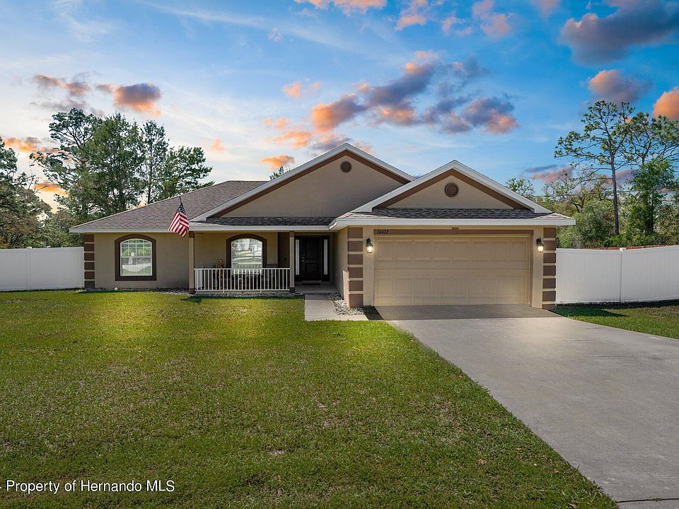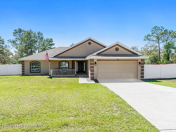 Why wait to build when this home is move in ready? Property offers a large 1+ acre cleared lot that has a 6 ft tall privacy fenced in yard. Now you can rest assured when you walk out your animals can safely roam on your property. A large 54X10 concrete patio is so versatile and would be the perfect place to host a Bar-B-Que. It has more than enough room for a jacuzzi, outdoor furniture, or a future outdoor kitchen. This home is not only centrally located (1 street off of Hexam Road) but it has no side or rear neighbors. This 4 bedroom home offers an owner's suite with a walk in closet, soaking tub and glass enclosed walk in shower. The open living, dining, and kitchen combination is the perfect entertainment space. The split floor plan design with three additional bedrooms and a secondary bathroom is ideal for families. Worried about summer storms? This home is equipped with an outdoor generator hook up right off the garage door. It is minutes away from major amenities, restaurants, super markets, hospitals, and attractions like Weeki Wachee Springs and the just announced New Lagoon community. Come and see why this home is the perfect place to make your own!