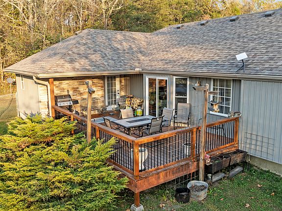 This 91+ acre property offers a stunning and well-maintained 3-bedroom, 2-bath home built in 2012 , located at the end of the private lane perfect for those seeking peace and privacy. The primary bedroom suite boasts a tray ceiling, a spacious walk-in closet that doubles as a storm shelter with cement walls, ceiling, and a steel door. The ensuite bathroom is equipped with a large soaking tub, a separate walk-in shower, custom cabinets, and granite countertops. Step outside from the bedroom through a private exterior door to enjoy the partially covered deck, ideal for relaxation. The living room features vaulted ceilings and a beautiful stone gas fireplace, creating a cozy atmosphere. The kitchen includes custom cabinetry, granite countertops, a gas stove, dishwasher, garbage disposal, osmosis filtration system, and a water softener. A portable island adds flexibility to the space. The dining room's sliding glass door leads to the back deck, overlooking a chain-link fence perfect for pets. The attached double car garage includes a wall-mounted propane gas heater, a utility sink, and a utility closet with an annually serviced osmosis water filtration system and water softener. Outside, the spring house shelters the well pump, and the property is fenced with creeks, three wet-weather springs, and trails throughout. The land offers a mix of trees and hayfields, The property has raised many head of cattle it is ideal for hunting or agriculture. Wildlife sightings include bear, deer, turkey, and mountain lion. Lots of Cedar, walnut, and oak trees, the property has been cherished by the same family since 1951.Spring house basin is full of clean spring water ask for video.Agents, please read Agent Remarks :)