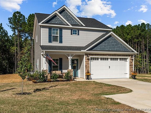 Better than new! If you're looking for country living with no city taxes or HOA, a move in ready/meticulously maintained home on a large lot AND at an affordable price point....this is THE ONE! Built in 2023, this 3 bedroom/2.5 bath home feels welcoming and cozy from the moment you walk through the door. The functional floorplan creates distinct spaces between the dining, kitchen and living room while maintaining the open concept feel-perfect for entertaining! The main floor features beautiful luxury vinyl floors, recessed lighting, crown molding, and a pop of color with a blue accent wall with built in cabinetry and a show stopping stone fireplace creating the perfect space to relax and unwind. The chef's kitchen is the heart of the home with sparkling granite countertops, classic white subway tile backsplash and a generously sized island ideal for additional seating. The stainless steel appliances along with the spacious pantry and ample cabinet space is a dream layout for cooking and hosting! Upstairs you will find three bedrooms, hall laundry and two full bathrooms. Stepping into the primary bedroom suite, you immediately feel the elevated ambiance with the natural light flooding in, trey ceiling and oversized walk in closet. The roomy ensuite bathroom boasts a double sink vanity, large walk in shower and separate water closet. The additional two bedrooms are generously sized with a full bathroom conveniently located between them to share. If you're an outdoor person, this property has endless possibilities! Starting with the extended patio, you can enjoy dining alfresco under your covered patio or sipping your coffee with a beautiful view of the wooded back tree line. The .7 acre lot features a custom garden oasis with raised garden beds with stone paths and perimeter-perfect for the green thumbs in the family along with a freshly tilled and seeded backyard. to enjoy soon! This property is conveniently located near Harnett