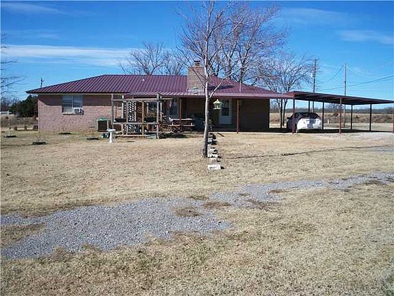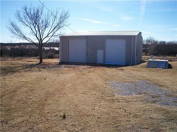 Nice open floor plan on this home that has so much potential. Bedrooms are a nice size with large closets. It is total electric, but there is an ONG hook up in front yard. The roof on house and shop were replaced in September 2013. Shop is 40x40 with tall doors and one side has hookups to septic so you can house your RV. Beautiful view of the lake. Also has a storm shelter. *Electric and Plumbing updated 2008!!!