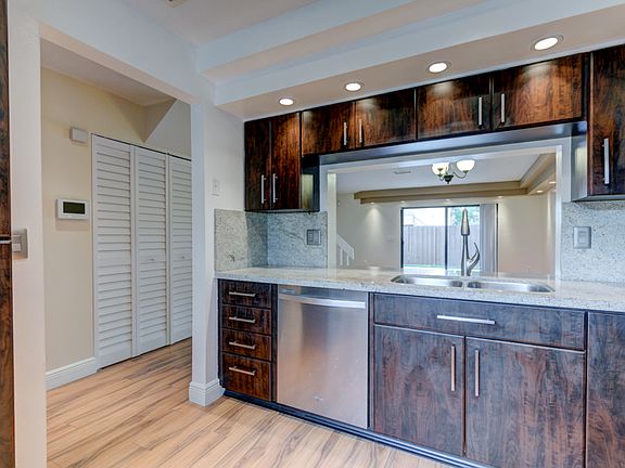 Beautiful turnkey two-story townhouse in Southbridge. Large 2 bedroom 2.5 bath floor plan with huge open living area downstairs. Completely upgraded kitchen with granite counters, wood cabinetry and stainless steel appliances. Spacious master bedroom upst airs with newly remodeled master bathroom. Second bedroom has en suite. Newly remodeled powder room on 1st floor as well as separate hall closet with front load washer and dryer. Custom lighting throughout and crown molding in bedrooms. Spacious fenced back patio