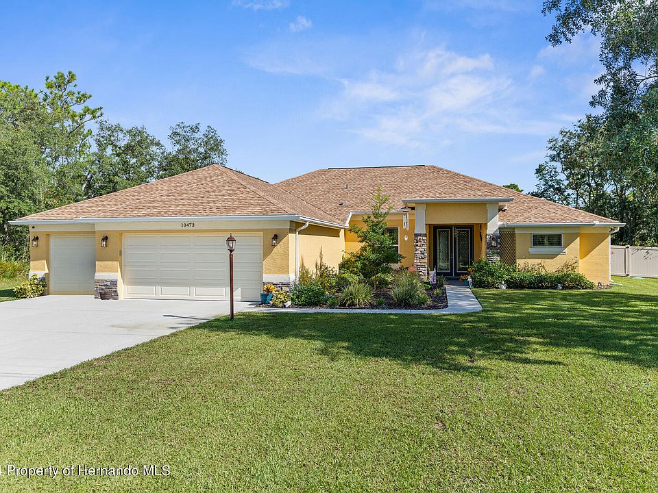 Welcome to your dream home! This stunning single family home boasts 4 bedrooms, 3 bathrooms, and 2,304 square feet of luxurious living space. As you enter, you'll be greeted by a spacious and open floor plan, perfect for entertaining guests or relaxing with your family. The kitchen features modern appliances, ample counter space, and a large island for meal prep. The second bedroom even has its own private bathroom, making it the perfect guest suite or in-law quarters. The den provides a versatile space for a home office or playroom. Built in 2021, this home is better than new with upgraded finishes and attention to detail throughout. The fully fenced yard offers privacy and security, while the 3-car attached garage provides plenty of space for vehicles and storage. Situated on almost 1 acre of land, you'll have plenty of room to enjoy outdoor activities and create your own oasis. Don't miss out on the opportunity to make this your forever home. Schedule a showing today!