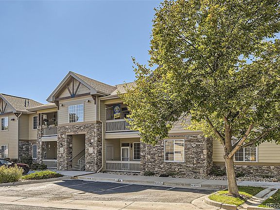 Ground level end-unit condo in Preserve at Weaver Creek! Quick access to 285 and C-470 making the mountains and downtown just minutes away. Enjoy the bright open living-dining area with 9 ft. ceilings and newer wide plank laminate flooring throughout. The living room is flooded with natural light and features a gas fireplace, several built-ins and a slider to the covered patio with storage. The kitchen has 42 inch upper cabinets, pantry and bar seating, great for entertaining. The primary bedroom has a walk-in closet and a newly renovated en suite that features double sinks, new soaking tub and beautiful new tile in the shower. There are 2 additional spacious bedrooms that share a newly renovated bath with new vanity, tub and tile. This unit comes with 2 parking spaces, one covered. Whether you are looking for great schools or one level living, you will love this condo. Live near Homestead Golf Course, Fox Hollow Golf Course, Bear Creek Lake and multiple biking/walking paths! Community includes a clubhouse, outdoor pool and playground.