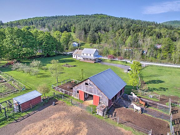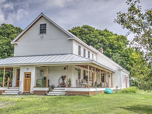 New England Cape built in early to mid 1800's. Wood flooring throughout older part of house, which has been updated over the years with modern conveniences but still has the rustic nature of a house built by an old farmer in the 19th century. House includes an addition that was built in 2011 which includes a full basement, first floor mother-in-law apartment, and master bedroom and bath on second floor. The third floor of the addition is a home office and is accessed from the master bedroom on the second floor. Heat in the new addition is hot water baseboard, and heat in the older section is currently wood stove. Outside of the home, there is a barn with 4 stalls, tack room and loft for storing hay. In the back of the property is a pond that has been landscaped with natural rocks and a small waterfall. The property was originally part of a larger farm and the original rock walls remain around portions of the boundary, including a double rock wall lane back to the pond. The 1860's Beers Atlas shows that this home was a series of homes clustered in a small village referred to as "Newcombville", and if you have an hour to spend having a coffee and a pastry at the Barnard General Store, you can listen to the stories of the area from the locals. Across Route 12 from the house once stood a mill on Locust Creek - a holdover from the days when VT was primarily a place for sheep and dairy farms and mills were abundant on many waterways for lumber and wool production.
