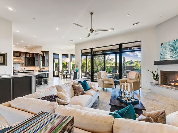 This custom home in Candlewood Estates is a true masterpiece, offering an unparalleled living experience on a private, north/south-facing lot along the 18th hole of the prestigious Troon North Pinnacle Golf Course. Enjoy the breathtaking views that encompass Pinnacle Peak, Troon Mountain, Tom's Thumb, Brown's Mountain, and the shimmering lights of the city below. Step inside and discover a world of elegance and comfort, featuring three bedrooms, study, and three and a half bathrooms thoughtfully designed to perfection. With no interior steps and the added convenience of a private elevator to transport you to a secluded guest suite upstairs, this home embodies the essence of easy living. The heart of this residence is its impressive chef's kitchen, where culinary dreams