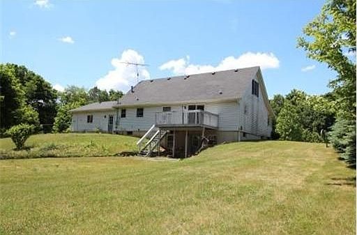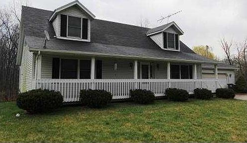 This gorgeous Cape Cod sits high on a hill with panoramic views. 2254 sq ft., 3 bedrooms, main floor master suite, 3 full baths, formal dining room, walkout basement, 2.5 attached garage and lengthy front porch, all on almost 8 beautiful acres. The huge pole barn has a concrete floor and 220 amp service. All appliances included. Extra value in splitable 4 acre parcel. Half the property has mature woods, excellent hunting!!!