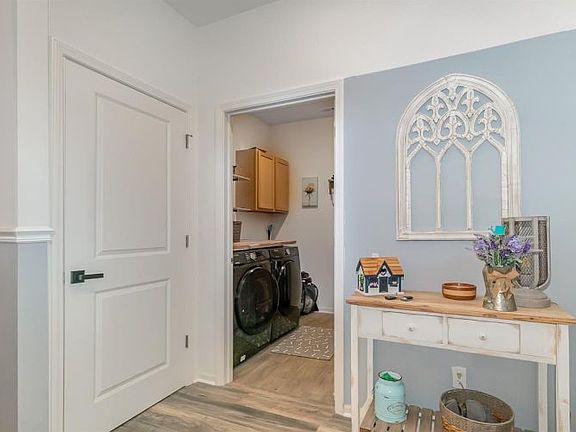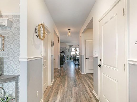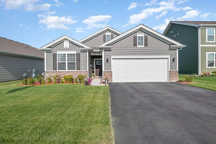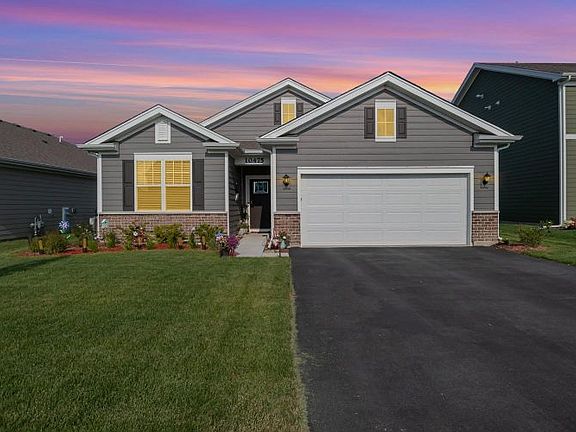 WELCOME HOME -This GEM has impressive style and class you will notice as soon as you step inside this Beautiful ranch located in the Gates of St. John!!. You be delighted with the open concept kitchen with dining area and huge island, featuring quartz countertops, 42 cabinets with crown molding, walk in pantry overlooking the great room with custom built stone fireplace and shiplap wall. The primary bedroom is quite large with an ensuite bathroom and a gorgeous custom titled shower. The other bedroom has a custom built-in murphy bed that makes this a multi use room. The lovely den has a huge window for natural light. Throughout the home you will find upgraded flooring, light fixtures, upgraded faucets, window treatments and blinds, chair rails, shelving, crown molding and so much more.As you walk outside imagine sipping coffee in the tranquil oasis w covered patio and paver patio and vinyl fencing. All appliances included, water softner owned. Crown Point schools. Shows like a Model Home