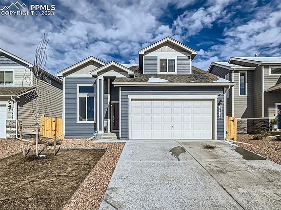 Welcome home to this nearly brand new home at the desirable Creekside in Lorson Ranch. Built in 2021, this home features a main floor master with en suite bath and a great walk in closet. An open floor plan on the main level, connecting the living room and kitchen, as well as a separate dining area, are all enhanced by vaulted ceilings and lighting, making it feel so much larger than the actual square footage. The kitchen has lots of counterspace with Quartz countertops, almost new stainless steel appliances, plenty of cabinets and a pantry. Rounding out the main floor are the laundry area and an additional half bathroom. Upstairs you will find two additional bedrooms and a loft area perfect for home office, library or game room, as well as a full bathroom. There has not been anyone who has lived upstairs, so it truly is as closed brand new as you can get. As you walk out back onto the concrete patio, you will be delighted to find a fully fenced yard and beautiful Mountain View’s to the east. Both front and back yards have a sprinkler system and have been professionally landscaped as well. Come see the difference in this near brand new home today and be ready to move right in!