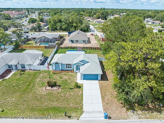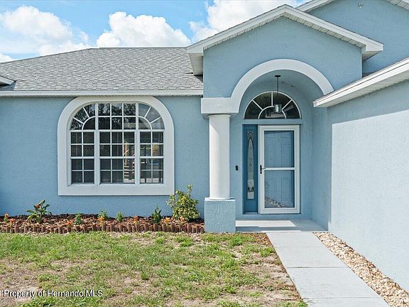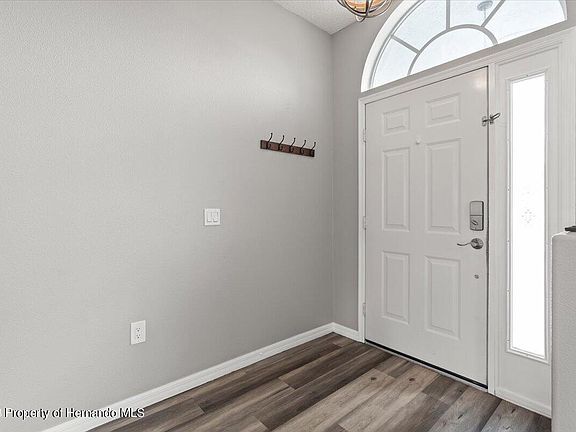 Back on Market due to buyers lack of financing. Check out this amazing 3 bedroom, 2 bath above ground Pool home with a gorgeous Pergola in the back. The front yard overlooks a retention pond. Located in the heart of Spring Hill. No deed restrictions. The floorplan consists of an entry foyer, formal dining area, a large living room overlooking the backyard and oversized 8x26 open porch through the sliding glass doors. This home is freshly painted, has updated lighting, and waterproof vinyl plank throughout. There is also a nice dinette just off the kitchen overlooking the backyard. This home boasts 10-foot ceilings throughout. The master bathroom features a soaking tub, separate shower and double sinks. There is also an indoor laundry room. The above ground and pergola were installed in 2022. The pool is heated with a highly efficient unit. It measures at 15ft x 30ft.. Take in the beautiful serenity as you enjoy a morning cup of coffee on your patio while listening to the melodies of nature. Weeki Wachee Springs is just 15 minutes away. It's only 45 minutes from Tampa Airport and just 1 hour from some of Florida's best beaches. Call today for a private tour.