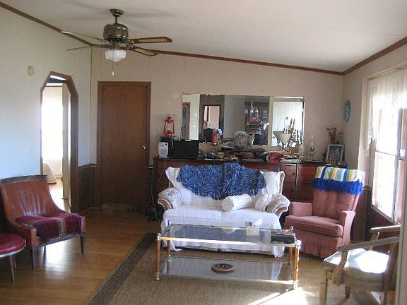 This property could be a nice little mini-farm. 2.7 acres with pasture, fruit trees, garden area. Easy access, Built on 2 car garage. This manufactured home has lots of room with open and covered deck. Root celler and a 2 story block building for workshop or what not. Upstairs has 2 rooms, kitchen and bath. Nice laying land. Home has an in home generator. This is actually a 4 bedroom manufactured home but we are listing as a 3 bedroom with a bonus room until we can verify 4 bedroom perk.Handicap accessible at the back deck.