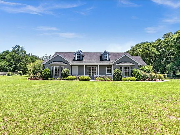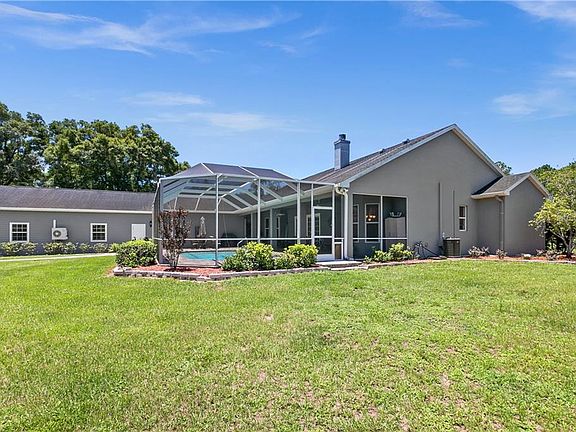 SPECTACULAR 3 bedroom, 3 bath, 3 car garage POOL home on 3 ACRES which includes COMPLETE IN-LAW SUITE IN MAIN HOUSE; CLICK VIDEO TAB AT TOP (AND PHOTOS!) FOR A MUST SEE TOUR!! Main house kitchen boasts 46'' custom cherry cabinetry with adjustable and pull-out shelving, beautiful granite counters, bar top with seating, and center island with sink; dining nook; hardwood and tile flooring, 10' ceilings, bay windows, wood burning fireplace; master bedroom suite with gorgeous master bath featuring dual sinks with custom cherry vanity/cabinetry, jetted tub, and separate shower; climate controlled 28x24 studio currently being used as woodworking shop, large storage area above studio; huge 26x14 pool in screened lanai with pavered pool deck; in-law suite portion of main house features separate living room, kitchen, full bath, separate a/c unit, and private entrance from lanai and pool area; property FULLY FENCED, separate fenced area with custom goat barn; SECOND HOME ALSO on property built in 2014 has 1875 liv. sq feet with 2 bedrooms, 2 baths and features kitchen with wood cabinetry, granite counters; beautiful laminate and tile flooring, open floor plan; designer bathrooms, inside laundry with large storage room; exterior storage shed; exterior garden shed; RV PARKING SITE WITH FULL HOOK-UP! This stunning one-of-a-kind home has too many features and upgrades to list here! Zoned for horses!!