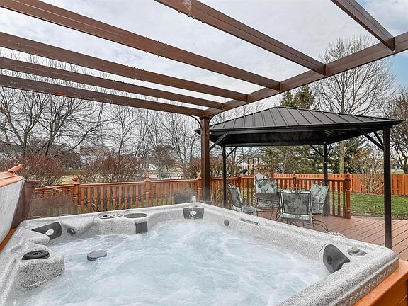 WOW! 4 Bedroom w/ 3-Car Garage in The Meadows of Noblesville. PRIME lot with fenced backyard, spacious deck, and hot tub overlooks common area. Just a few steps to the community playground and pool! Gorgeous flooring throughout the entire home (no carpet here!) Updated kitchen with granite counters, backsplash, stainless appliances, pantry, and breakfast bar flows into family room with fireplace and plenty of room to entertain. The main level also features a formal dining room off of the kitchen, a generous front living room, HUGE laundry room, and updated half bath. Upstairs, the primary suite features vaulted ceilings, accent wall, and dual vanity. Plenty of space in the secondary bedrooms! Close to everything Noblesville has to offer.