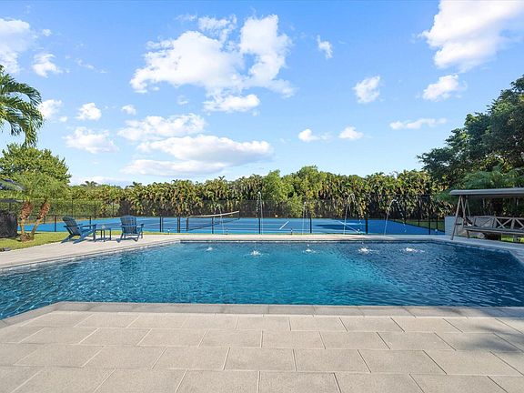 Rare opportunity to own this little slice of paradise in the gated enclave of Rio Poco. Looking for privacy and land in a prime location? This home has it all from separate guest/pool house and 900 sq.ft. air conditioned garage both constructed in 2016 as well as private tennis court constructed in 2021. Completely remodeled flooring to kitchen and bathrooms, impact windows, whole house generator installed 2023, 500 gallon propane tank, new exterior doors and light fixtures through out, fruit trees and freshly painted interior and exterior . Backyard oasis has been restructured inclusive of resurfacing of salt water pool, new pool equipment, expansion of pool deck area. Attention to detail was noted in this complete home renovation. This gem will not last long!