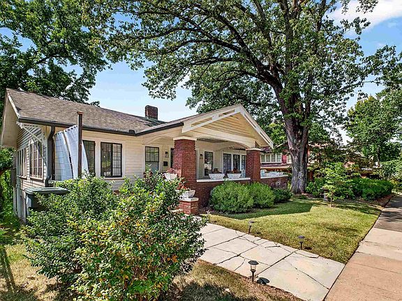 Charming 2/1.5 bungalow nestled on one of the best streets in Highland Park! Watch the seasons change from the swing on the spacious front porch, and catch breathtaking sunsets with unobstructed views from your back deck. Inside, tall ceilings, crown molding, original hardwoods, and light-filled pop-out windows create a warm, inviting space. A cozy gas fireplace framed by built-in bookshelves anchors the living room, while the formal dining room and sunroom (currently used as a playroom) add function and flexibility. Two bedrooms, a full bath, and a bright, oversized kitchen complete the main level. Downstairs has endless potential with a finished office, utility room with half bath, and bonus space. The detached garage provides extra storage. All new electrical 2025, laundry moved to main 2022, new plumbing throughout with water heater and whole house filtration system 2018, full exterior renovation with paint, gutters, and insulation 2016, roof 2016, foundation reinforcement 2014.
