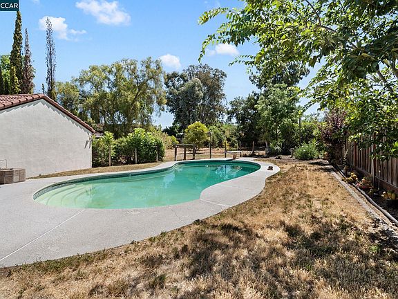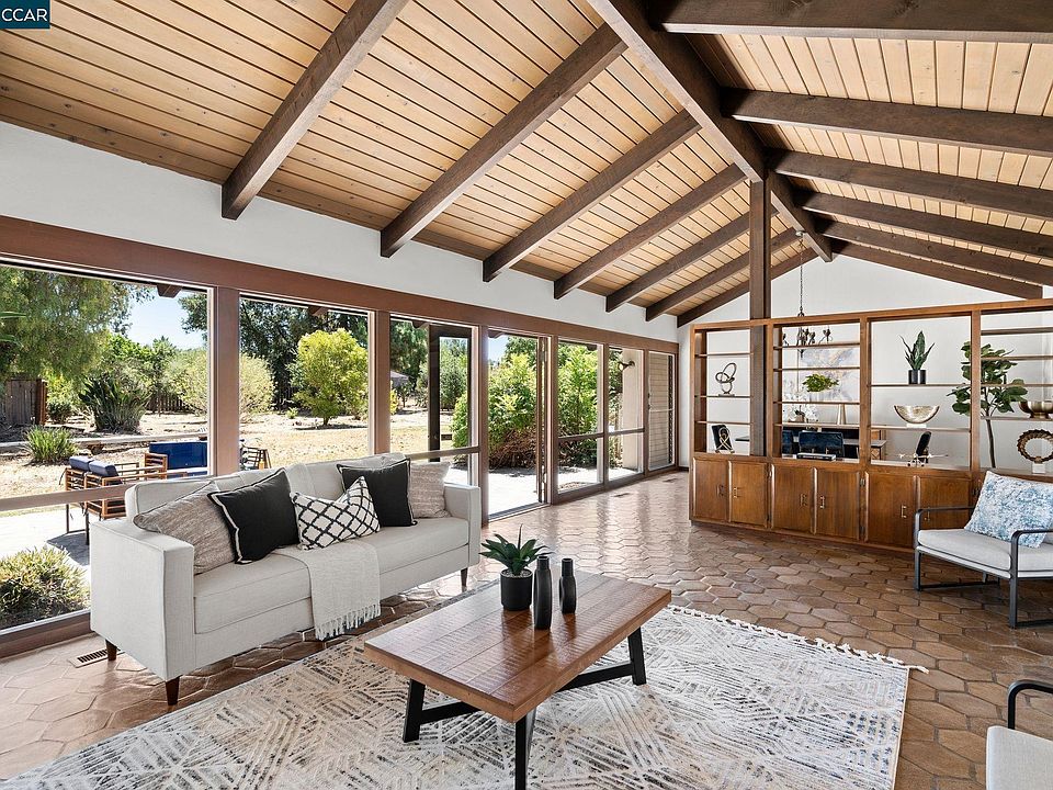 Welcome to 1048 Bucknell Ct, an exquisite Spanish mid-century modern style home located in the desirable Jenson area of Livermore. This architectural gem is accented by vaulted exposed wood beam ceilings and boasts an open and airy floor plan, perfect for modern living. Huge floor-to-ceiling windows overlooking the backyard flood the space with natural light, creating a warm and inviting atmosphere. Spanish revival influences can be seen in the courtyard style entrance, round arches and beautiful hexagon tiling/pavers adding a touch of elegance throughout. 40+ year old Koi fish await you by the entrance to the home! The expansive backyard includes two separate parcels totaling over half an acre, offering endless possibilities for outdoor entertainment and relaxation. The back parcel is zoned for multi-family use so building a guest house, multiple ADU’s or just additional living space is all a possibility. With a rich history of hosting memorable summer poolside parties, barbecues and even weddings, this home is the perfect venue for gatherings and celebrations. It truly is a one-of-a-kind unique property and a rare chance to build your dream estate. 1048 Bucknell is more than a home, it's a lifestyle. Don’t miss this opportunity!