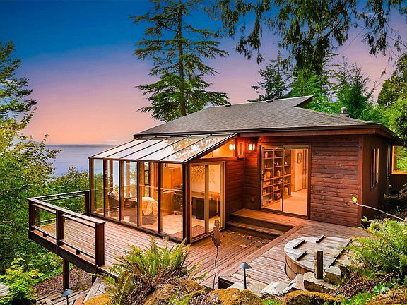 Privately tucked away along the slopes of Chuckanut Mountain this remarkable residence presents a stunning display of the San Juan Islands and Chuckanut Bay. Numerous windows fill the living space with sunlight, blending indoor and outdoor beauty effortlessly. The main bedroom is a complete with a luxe ensuite with radiant heat floors, a spacious walk-in closet, and an office area. The sunroom was purposefully designed as a sanctuary, offering the luxury of an outdoor escape no matter the season. Outside, the wrap around deck is the ideal spot for entertaining and watching the sunsets. Located adjacent to the Interurban Trail, with close proximity to beaches and Larrabee State Park, this home provides an abundance of recreational options.