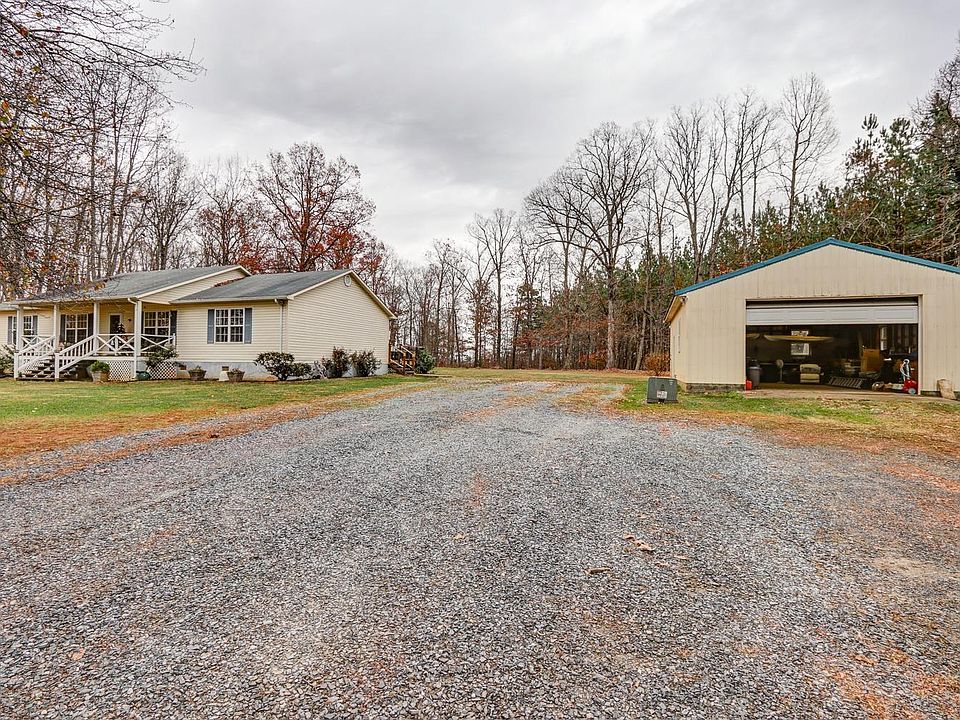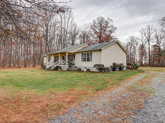 Beautiful setting with the house back off the road hidden in the hardwood forest. You won't miss the 28 x 32 garage that every man loves! This 3 bedroom 2 full bath home on over 5 acres will impress with a rocking chair front porch and a large 16 x 32 deck on the back ready for entertaining. Every room is oversized and the office could be converted into a bedroom, den or man cave. The 14 x 17 master with ensuite bath is sure to please. Kitchen and living room are open to keep everyone involved with bar seating for eating or homework. This home is 15 min to Rustburg, 22 min to Altavista, 17 min to Foster Fuel on 29 and 27 min to Liberty. This is a must see for purchasers wanting to be tucked away in the woods.