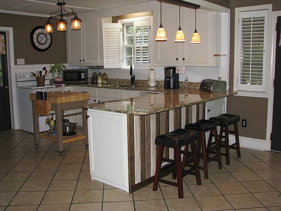 Cozy, Cute, and Comfortable. This stylish renovated home offers a lot of bang for the buck. The kitchen has a beautiful remodel including granite tops, custom cabinets, plantation shutters, and tile floors. Bedrooms are very large with ample closet space! Enjoy an open concept with dining area and large living area with gas fireplace. No carpet in this one, only rustic hardwood flooring throughout! But wait, theres more.... It has a powered and cooled man cave, with a deck!! Great location!