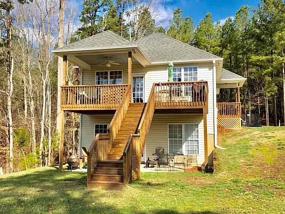 The coziness of this house just oozes from every nook and cranny at Hyco Lake!This charming house lives bigger than it looks ... with its open floor plan and perfect southern touches. Master bedroom on main level and 2 bedrooms and an office and den area in the lower level. One of the most easiest walks to the lake! Wonderful deck for watching sunsets. Single slip boathouse. Northern side, near the ski course. Concrete pad for parking or outdoor furniture. Nice outbuilding will convey.