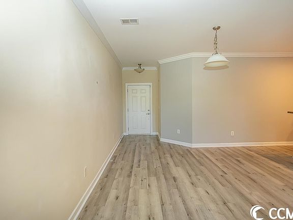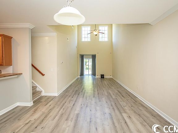 Charming and very spacious town home located in sought after WildWing development near Carolina Forest.  Soaring ceilings with crown moulding and high windows let natural light in. The kitchen has newer matching Samsung SS appliances, honey maple cabs and a nice sized pantry.  Vinyl plank flooring throughout first level living spaces. Powder room and master bedrm w/ ensuite bath conveniently located on first floor too.  A Large loft area is a bonus upstairs where there is also 2 more bedrooms, a full laundry room and 2nd full bath. Surround sound hook ups, a full sized 2 car garage and a wonderful wooded, private back yard complete the picture!  Lots of space to grow and live comfortably! Close to shopping and 10 mins to the beach.