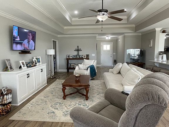 Beautifully appointed all on one level 5 bedroom, 3 bath, 3 car OVERSIZED garage! Covered back porch, backs to pond, over an acre, Open split plan. Popular Austin Homes, LLC build only 2.5 years old! Smooth ceilings, granite tops, tons of storage, ceramic tile in laundry and baths. Gas cooking, tankless gas water, private well, and more! HOA includes common area maintenance.