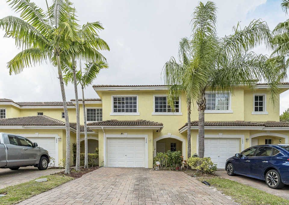 Spacious water view townhome with garage, built in 2005. Features include: Spacious Kitchen w/abundant storage, pantry & breakfast bar (refrigerator excluded) open to Living/Dining rooms with slider to covered patio and lovely, expansive water views. Convenient first floor half bath as well. Upstairs are two nicely-sized secondary bedrooms, full secondary bath and convenient Laundry Room. The Master Suite features TWO walk-in closets and Master Bath with large shower, dual sinks and linen closet. This gated community allows up to 3 pets (non-aggressive, up to 75 lbs), offers pool, tennis & more and is centrally located close to shopping, dining, PBI airport, beaches and commuter routes. Be sure to check out the great floor plan in the documents tab!