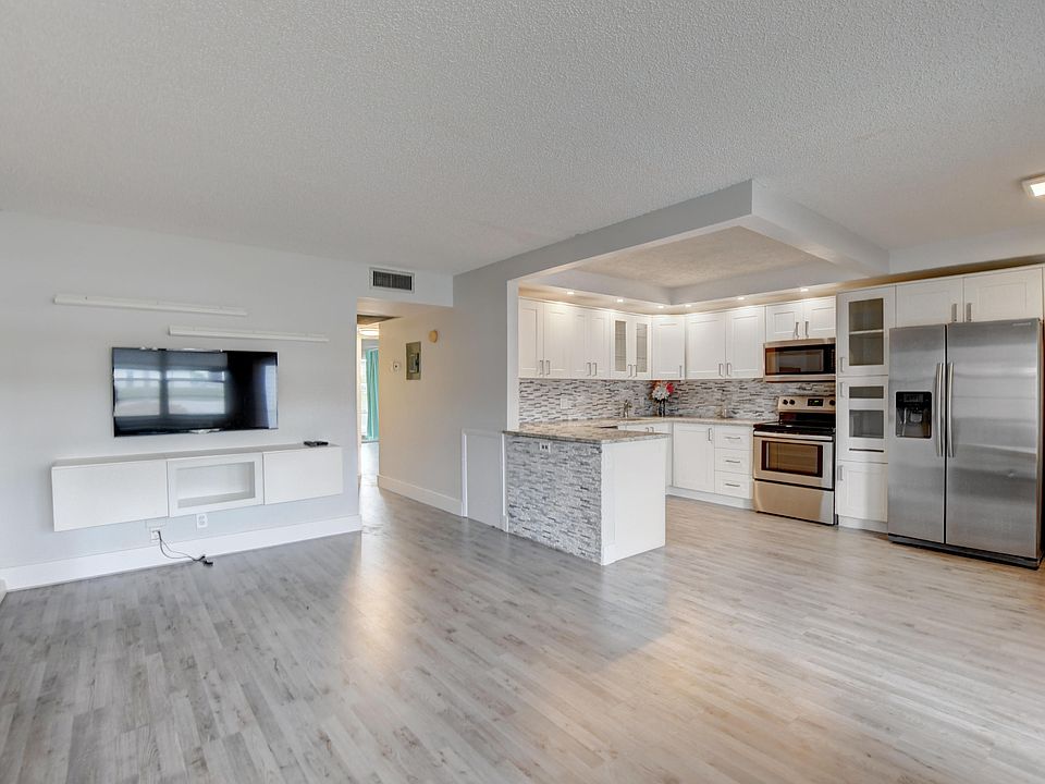 COMPLETELY RENOVATED! MODERN DECOR! BEST 1ST FLOOR LOCATION. White Kitchen( no wall), decorative backsplash, SS appliances, New flooring throughout, New baseboards,New guest vanity, New light fixtures in both bathrooms and hallway,New plumbing for guest bathroom vanity,New paint throughout. BRIGHT AND AIRY. HURRY, THIS WILL SELL FAST!