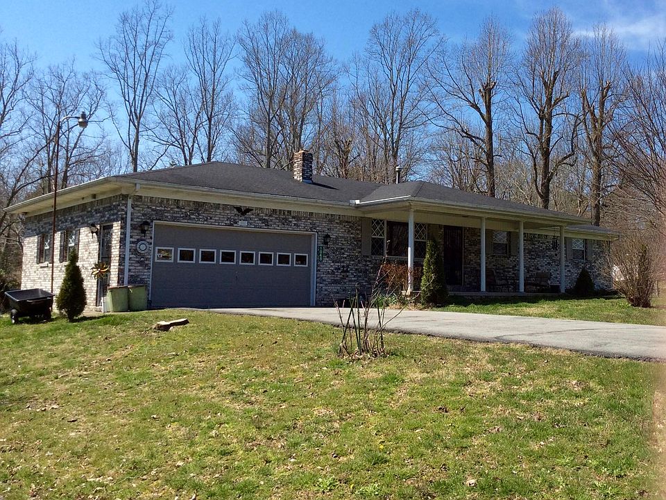 Brick home with finished basement. Approx. 13.8 acres with pond. Three bay detached garage. 3 bedroom, 2 bath. New appliances. Covered back deck. Poured concrete walls in basement. Attached two bay garage. Fruit trees, blackberry vines and garden area. Two outbuildings with electricity.
