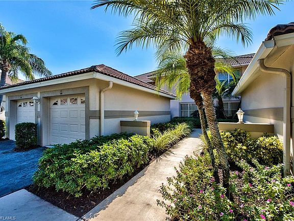 Looking for something special in North Naples? Listen to just some of the amenities of this FURNISHED 2+den second floor coach home and see why we feel this is an outstanding deal! Detached 1 car garage with extra long drive way for added parking. HURRICANE SHUTTERS THROUGHOUT! A/C IS 4 YEARS OLD. HOT WATER HEATER IS 2 YEARS OLD. Tiled floors throughout except for the bedrooms. Eat in kitchen with exotic granite, NEW DISHWASHER and breakfast bar. Guest bathroom with updated vanity and granite counter tops. Den has a built in desk, or can easily be converted into a third bedroom. Spectacular views of the 5 acre lake, fountain and preserve of trees. Vaulted ceilings. Large master bedroom with walk-in closet, make up table and sliders leading to the lanai. Master bath has dual vanities, large walk-in shower and tub shower combo as well. Just minutes away from Delnor-Wiggins Pass State Park, Barefoot Beach, Vanderbilt Beach, exceptional restaurants and Mercato. If you're looking for an exceptional property, in an exceptional golf course community for an exceptionally good price your search is over.