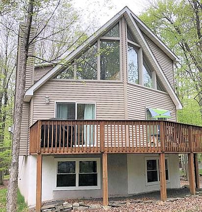 Perfect Chalet home in Wallenpaupack Lake Estates full amenity community with 3 beds 3 baths and well maintained. It is waiting for you to move in! Wonderful memories can be made in this home and the surrounding area. Near Lake Wallenpaupack, Deer lake, beach and the indoor pool. This full amenity community offers 2 outdoor pools, an indoor pool and Lake Rights to Lake Wallenpaupacks 5700 acre lake. This meticulously maintained home will be the perfect getaway or a great full time home. Sits on a beautiful level lot and has everything you need in your dream home. There is a family room on the lower level with a walkout to the property. A large deck off of the main living area and another deck off of the 1st floor bedroom. The community has many amenities for your family to enjoy!