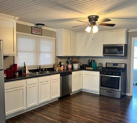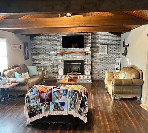 As you enter this beautiful home you are greeted by a large open living room with vaulted ceiling and beautiful wooden beams as well as large gas burning fireplace with laminate flooring throughout the home. Off the living area is a large screened in porch area. Great open floor plan kitchen with stainless steel appliances and custom cabinetry and dining area. Master Bedroom with a full bathroom. One full guest bathroom and two additional bedrooms. Good size laundry room off the kitchen. Large deck with a large back. Total sq. footage of home is 1632. Call today to schedule your personal showing.