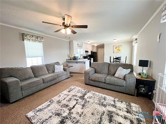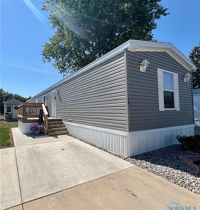 Just 1 year old & move-in ready in Parkview Mobile Home Village in Bowling Green, Ohio! This beautiful 3 bedroom, 2 bathroom split-wing home features a spacious primary en-suite with walk-in closet, neutral modern colors and design, laundry area, and all appliances are included. Relax on the large deck after work or host friends/family for a BBQ. Best part? It comes with your very own SHE/HE SHED - perfect for hobbies, storage, or your dream creative space. Lowest price for a newer home in Parkview! Don't miss out on this opportunity to own vs. renting!